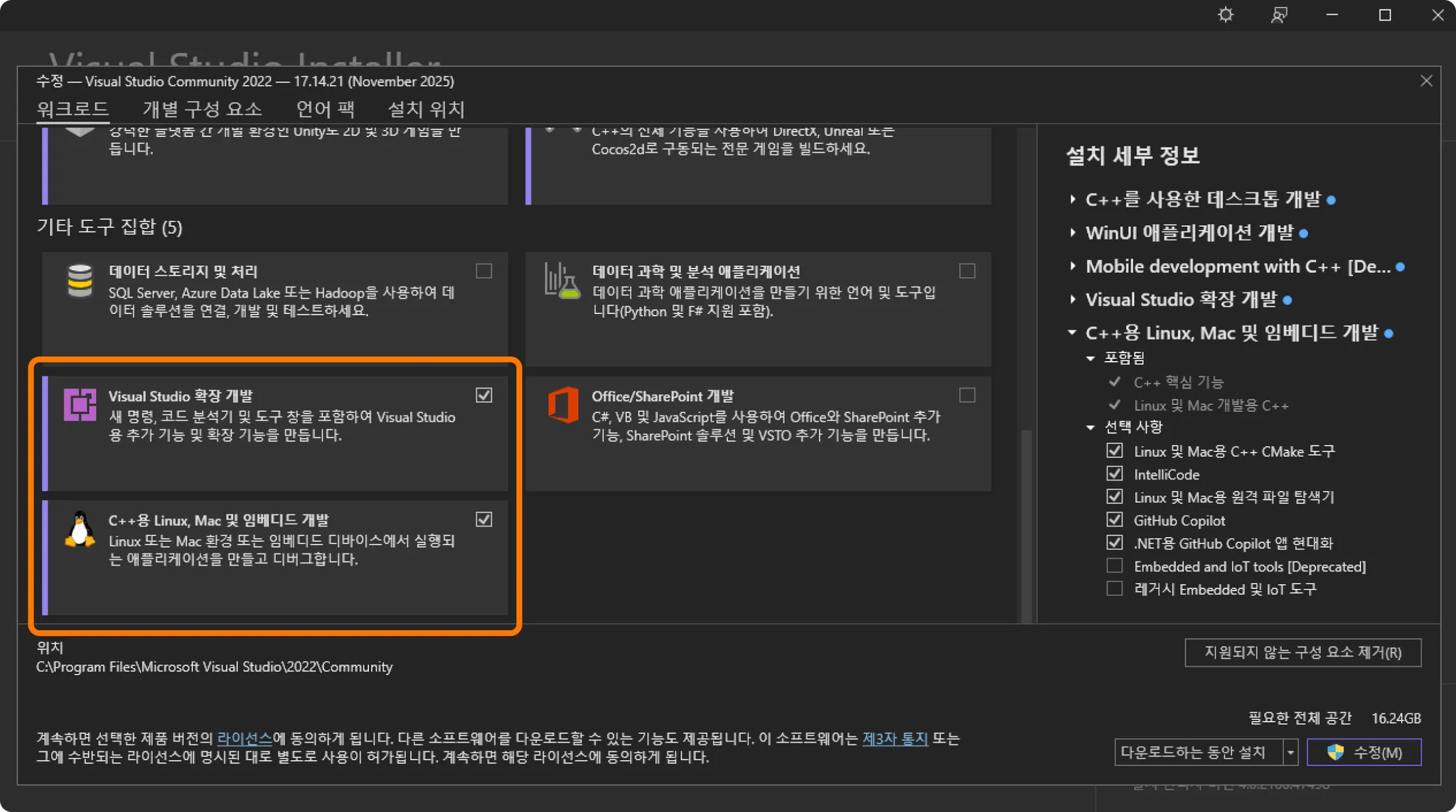 3. Unity 개발자를 위한 필수 설치 옵션